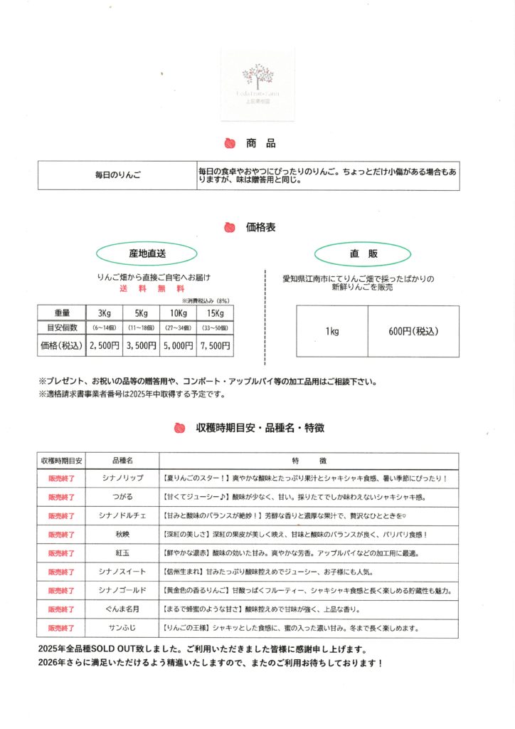 | 10月中旬 | 秋映・紅玉・シナノスイート |